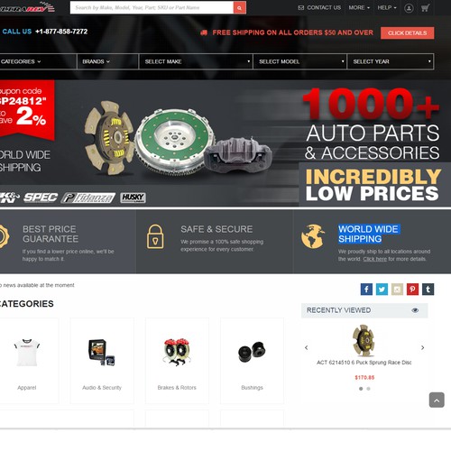 Home Page Banner Design For Automotive Aftermarket Parts Store